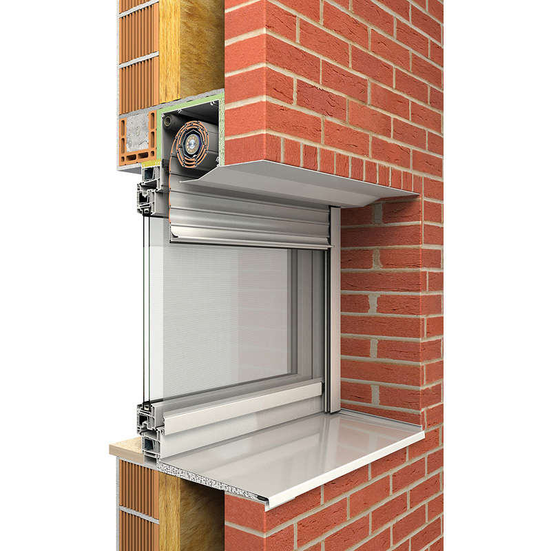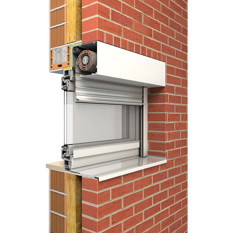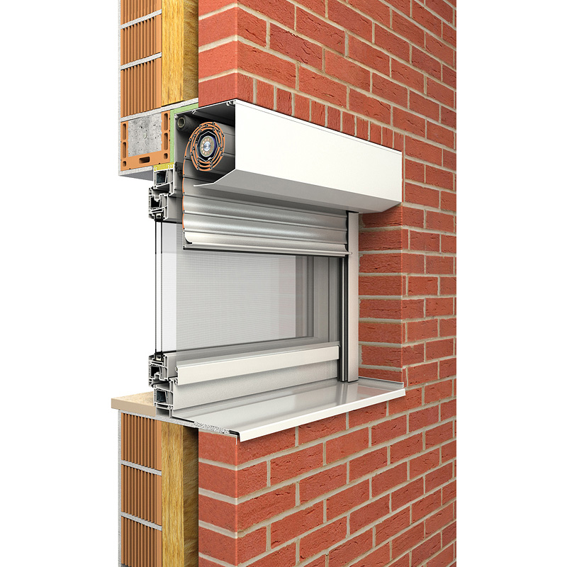 Das Rollladensystem passt sich in die Fassade ein und kann wahlweise mit eckiger oder fünfeckiger Frontblende verwendet werden.